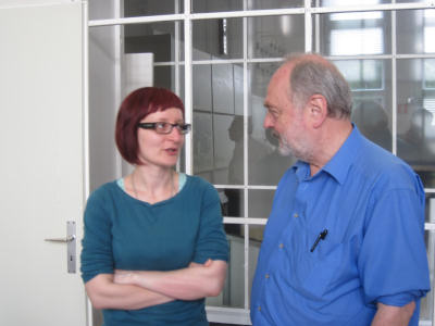 Unser FG-Redakteur im Gespräch mit der Dolmetscherin. |