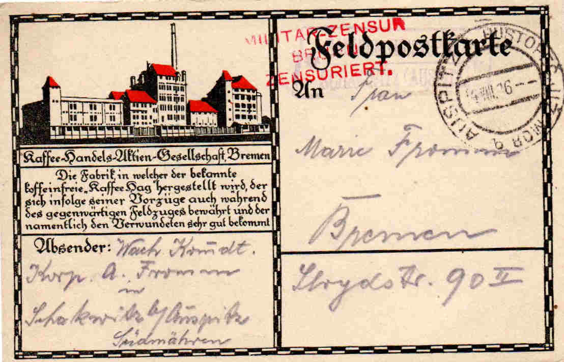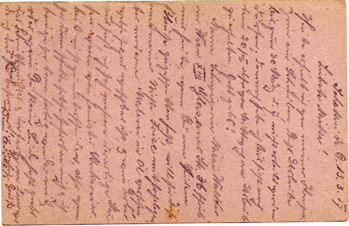 Von meinem Schwiegervater habe ein paar alte Postkarten und Briefe und insbesondere einige Feldpostkarten übernommen. Die Feldpostkarten stammen aus den Jahren 1915 bis 1917. Leider kann ich die Schrift nur bruchstückweise entzifern. Vielleicht gibt es jemanden, der das lesen kann. Obwohl die Feldpostkarten zensiert sind, ist der Inhalt sicherlich lesenswert. |